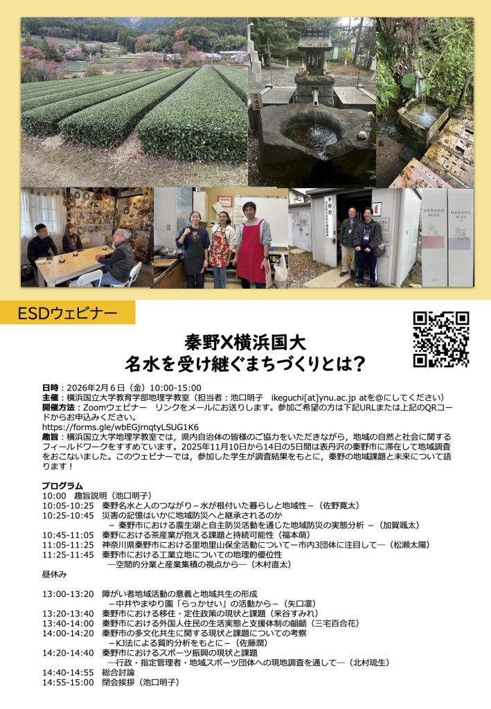 ESD Webinar “Hadano × Yokohama National University: How Can We Build a Town that Carries on the Legacy of Famous Spring Water?”